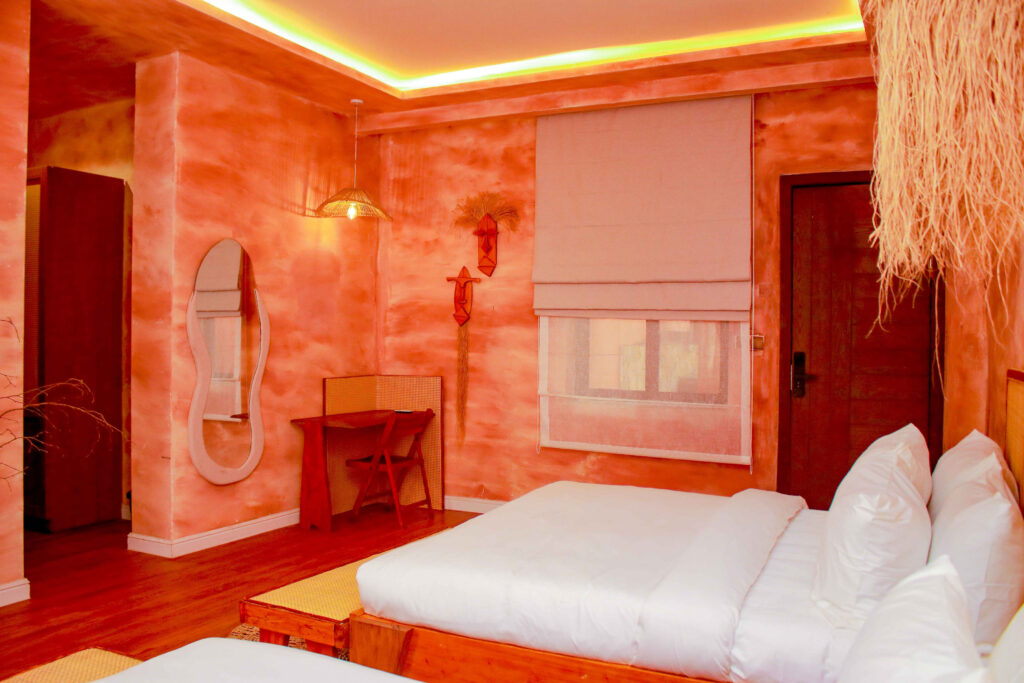 Experience the serene beauty of desert landscapes in this minimalist masterpiece. Clean lines, warm earth tones, and carefully curated décor create a sense of spacious tranquility. Two comfortable single beds offer respite from the world while maintaining connection to nature ' s stark beauty.
